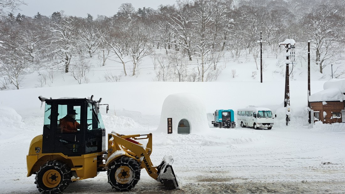 お客様の安全確保のため、高さ13メートル以上ある屋根の雪を降ろしています。
